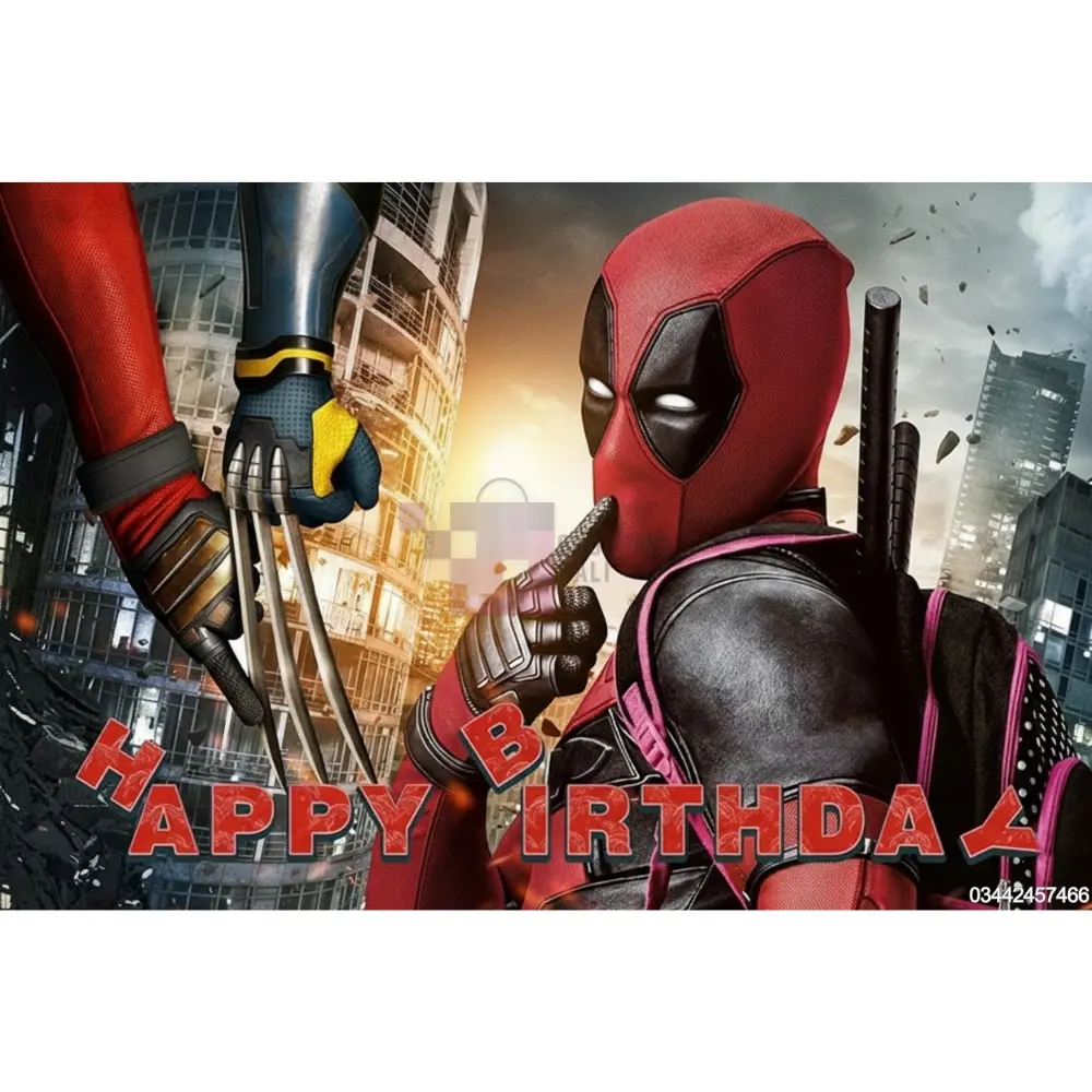 Get ready for a super (and slightly inappropriate) celebration with this awesome Deadpool Banner! Made from durable Panaflex material , this banner features the 'Merc with a Mouth' giving a shush sign, with a clawed hand (implied to be Wolverine's) appearing on the left, all set against a blurry city backdrop. The color is predominantly Red and black, with the bold "HAPPY BIRTHDAY" message. This banner is approximately 36 Inch By 24 Inch in size, making it an exciting photographic backdrop for a Deadpool Themed Party for a Boy or teen fan. This decoration comes as a single Pack Of 1 banner. Product images are original and I hope you will love them.