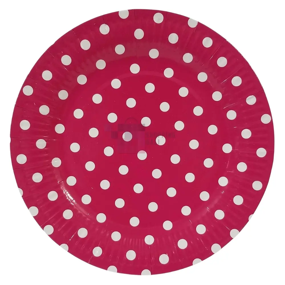 Serve your party snacks in style with this delightful Pack Of 10 Paper Plates. These disposable plates feature a fun and classic White polka dot pattern scattered across a bright Pink background. Made from durable Paper, each plate measures approximately 9 Inch in diameter. They are a perfect choice for Girls birthdays, baby showers, or any themed party. Product images are original and I hope you will love them.