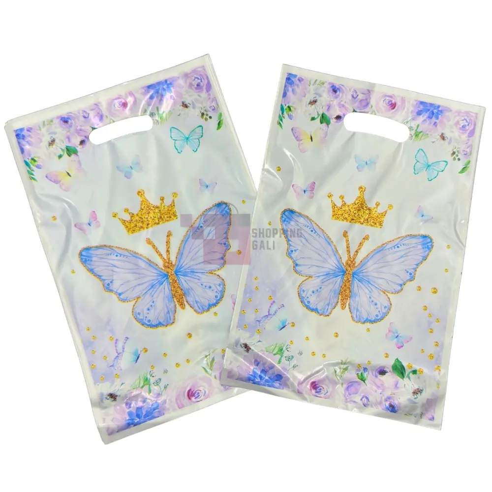Add a touch of enchantment to your party with this pack of 10 Butterfly goody bags. These blue gift bags feature a large, glittery butterfly in the center and a floral border, making them perfect for a girls' party. Measuring 10 inches by 6.5 inches, they are the ideal size for party favors. Product images are original and I hope you will love them.