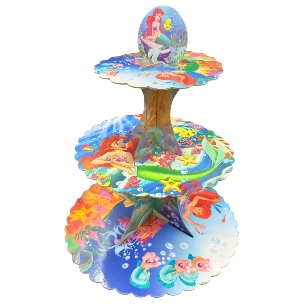 Display your sweet treats in enchanting style with this beautiful Mermaid Cupcake Stand! Made from sturdy Cardboard (implied by the assembly and party theme nature), this stand features a vibrant Multicolor design showcasing Ariel the Mermaid and her friends against an underwater scene of coral, fish, and bright marine life. The stand has 3 Tiers and measures approximately 12 Inch Height, perfect for a beautiful centerpiece at a Mermaid Themed Party for Girls. This stand comes as a single Pack Of 1 item. Product images are original and I hope you will love them.
