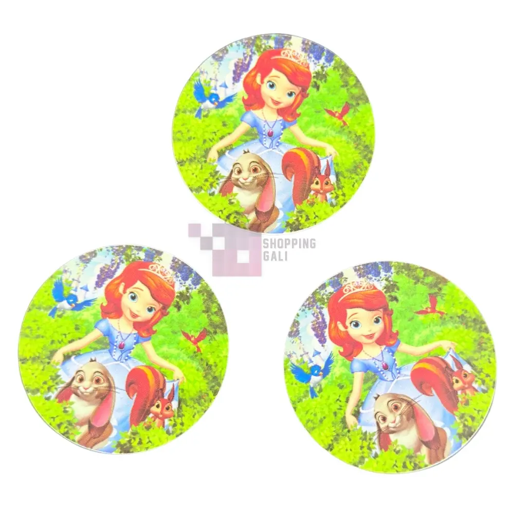 Add royal charm to your celebration with these lovely Princess Sofia Cutouts! Made from Paper, these circular cutouts feature Princess Sofia the First, along with her animal friends (a rabbit and a squirrel), set in a vibrant forest background. The design is Multicolor, reflecting the lovely setting and characters. Each cutout measures approximately 2.5 Inch in diameter, making them ideal for scattering on tables, decorating walls, or using as cupcake toppers for a Princess Sofia Themed Party for Girls. These party decorations come in a Pack Of 12 cutouts. Product images are original and I hope you will love them.