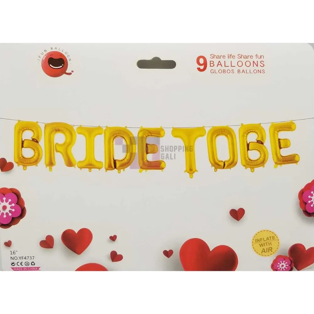 Bride To Be Golden Foil Balloons Are Perfect For Bridal Shower Party Decoration , Pack Has 9 Foil Balloons And Each Alphabet Size Is 16 Inch In Size. Product Images Are Original And I Hope You Will Like The Product.