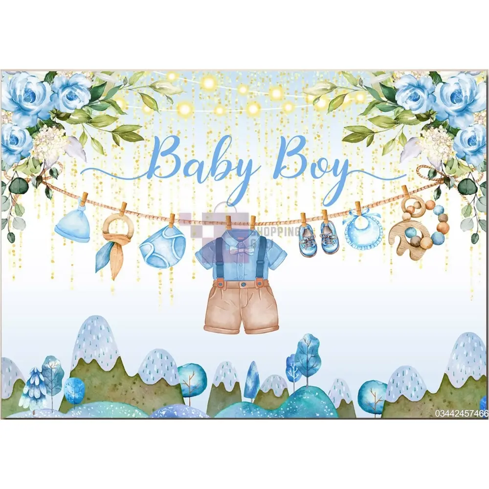 Welcome your little prince or celebrate his first birthday with this enchanting Baby Boy Banner! Made from durable Panaflex material this banner features a charming illustration of baby clothes (a shirt with suspenders and shorts) hanging on a line, surrounded by adorable elements like blue roses, a rattle, and glittering lights. The Blue script proudly announces "Baby Boy". This banner is approximately 36 Inch By 24 Inch in size, making it a perfect backdrop for a Baby Boy Themed Party, baby shower, or smash cake photoshoot for Boys. This decoration comes as a single Pack Of 1 banner. Product images are original and I hope you will love them.
