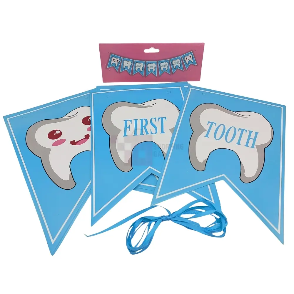 Got My First Teeth Banner In Blue Color Is Perfect For First Teeth Party Decoration And Pack Has 7 Card Banner With Ribbon Lace. Product Images Are Original And I Hope You Will Like The Product.