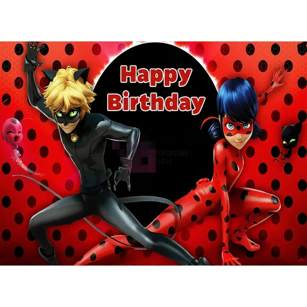 Transform your party into a Parisian adventure with this heroic Miraculous Banner featuring Ladybug and Cat Noir! Made from durable Panaflex material , this banner showcases Ladybug and Cat Noir in dynamic poses, along with their kwamis, against a vibrant Red and black polka dot background. A large, central black circle contains the "Happy Birthday" message in bold red and white. This banner is approximately 36 Inch By 24 Inch in size, making it an exciting photographic backdrop for a Miraculous Themed Party for any fan (Unisex). This decoration comes as a single Pack Of 1 banner. Product images are original and I hope you will love them.