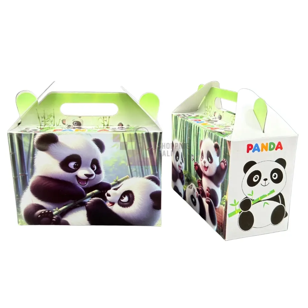 Send your guests home with a smile using these adorable Panda Goody Boxes! Made from sturdy Cardboard (implied by the box structure), these fancy favor boxes feature two playful pandas holding bamboo shoots against a Green bamboo forest background. The boxes are pre-scored for easy folding and have a convenient carrying handle. Each box measures approximately 6.5 x 7 x 3.5 Inch (L x H x W), making them the perfect size for party favors or treats for a Panda Themed Party. These cute boxes are suitable for all ages and genders (Unisex) and come in a Pack Of 10 boxes. Product images are original and I hope you will love them.
