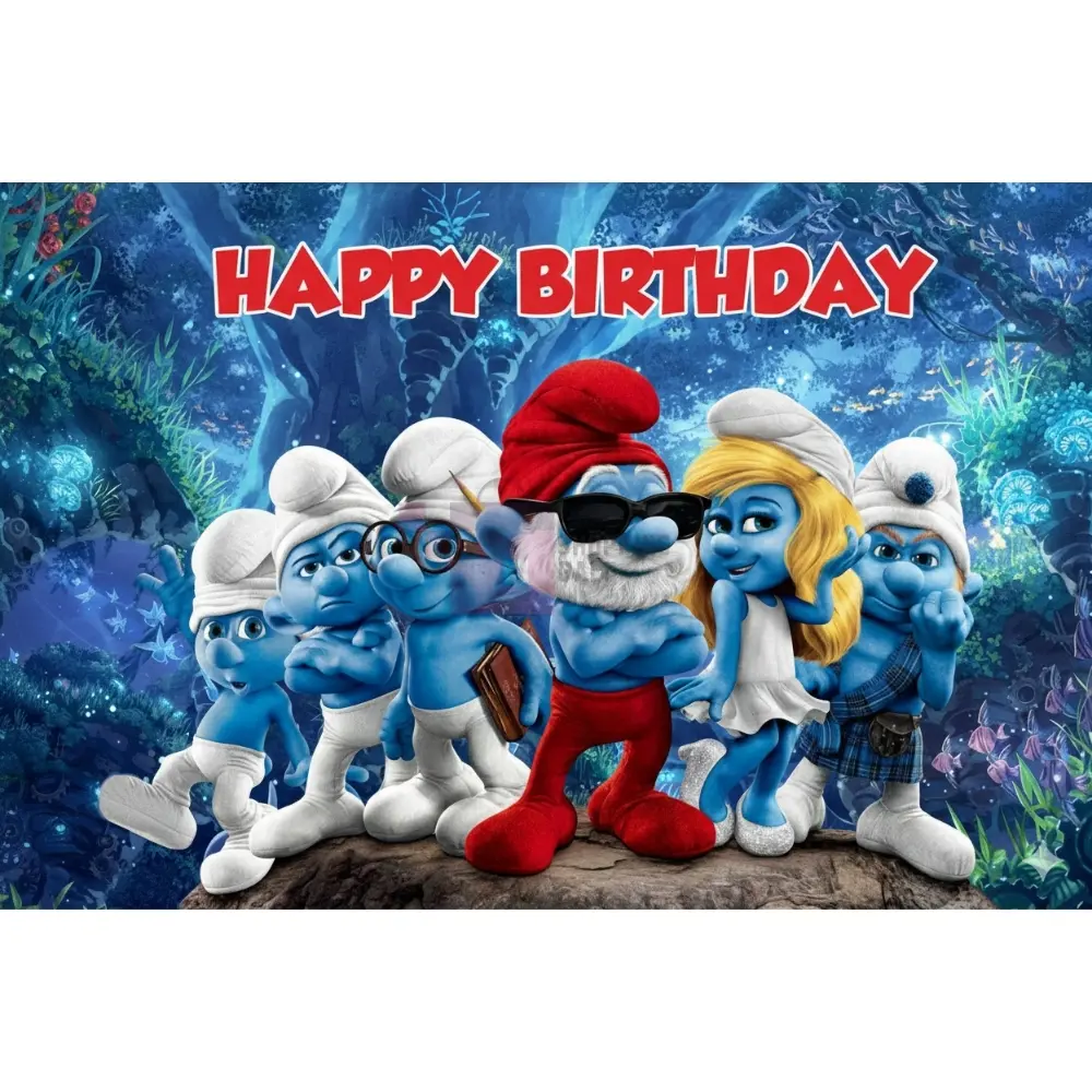 Gather your little smurfs for a big celebration with this playful Smurfs Banner! Made from durable Panaflex material , this banner features the classic Smurfs characters, including Papa Smurf and Smurfette, posing in a magical, Blue mushroom forest. A large, bold red font reads "HAPPY BIRTHDAY" across the top. This banner is approximately 36 Inch By 24 Inch in size, making it a delightful photographic backdrop for a Smurfs Themed Party for any fan (Unisex). This decoration comes as a single Pack Of 1 banner. Product images are original and I hope you will love them.