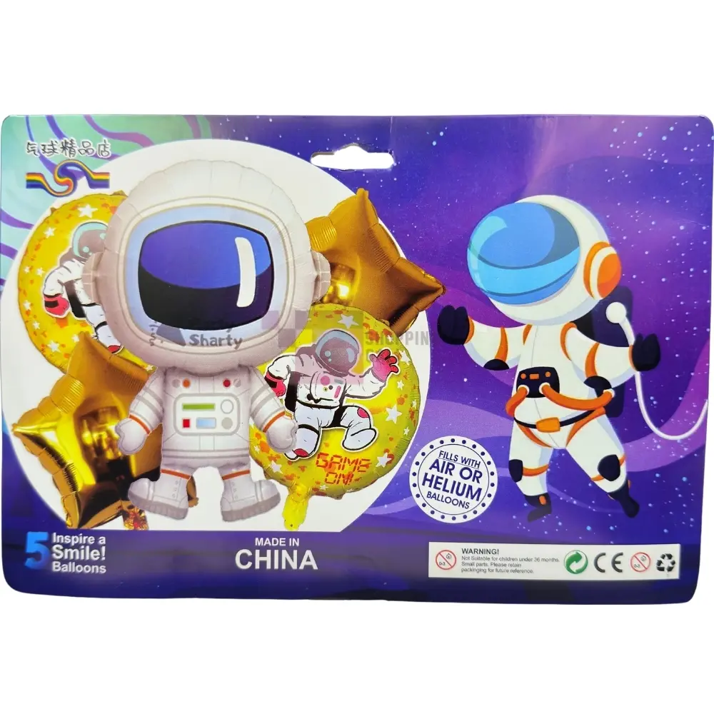 Launch your party into orbit with this exciting Astronaut Foil Balloon set. This Pack Of 5 foil balloons includes a large, detailed astronaut character balloon, a smaller astronaut "GAME ON!" balloon, and two Golden star-shaped balloons. These Foil balloons are designed to be filled with air or helium and are great for Unisex space-themed birthdays or events. Product images are original and I hope you will love them.